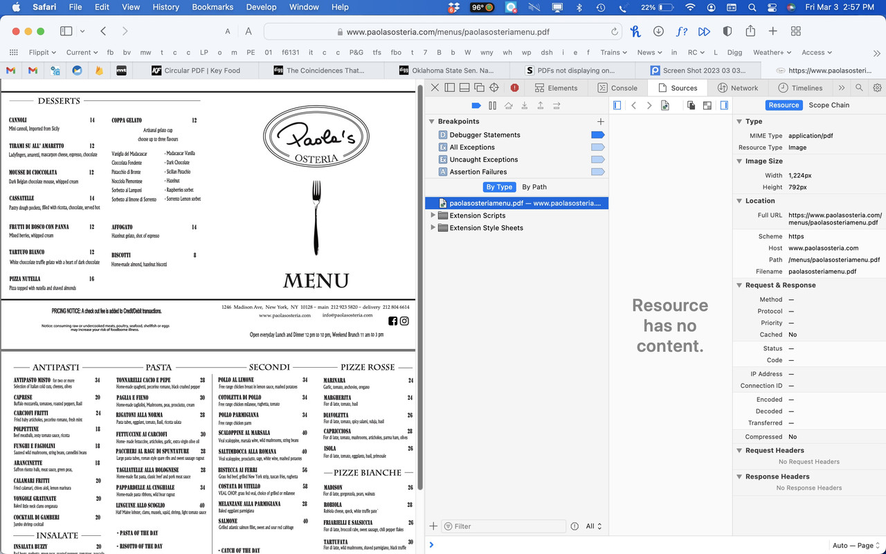 In Freeway, we simply added a link to the location of the PDF which is here: www.paolasosteria.com/menus/paolasosteriamenu.pdf