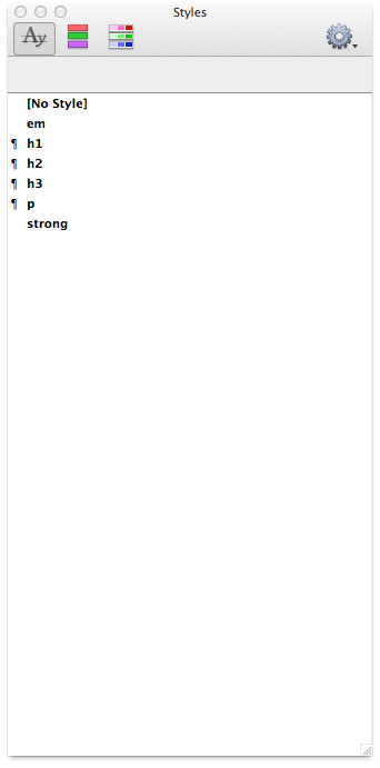 After that style your header and text: Select the text, see the inspector palette, click the round grey button with the T and see the text style at the bottom, use the + or – to choose / delete the style you need or need not. Be careful not to give text more than one style.
